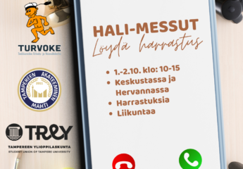 FI//EN Liikuntamessut Haluatko löytää uuden urheiluharrastuksen syksyn pimeneviin iltoihin? Tai onko etsinnässä oikea urheiluseura nykyiselle lajillesi? Tule Liikuntamessuille keskiviikkona 1.10. Päätalon aulaan tai/ja torstaina 2.10. Tamppi Areenalle tutustumaan erilaisiin liikunta…